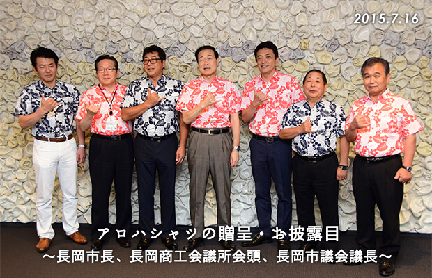 「長岡花火のアロハシャツ」~平和を願い未来に向けて子どもたちに繋ぐ想いを込め、長岡とホノルルの交流事業を応援するため、ハワイの正装であるアロハシャツの着用が始まりました!