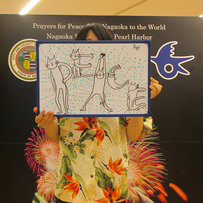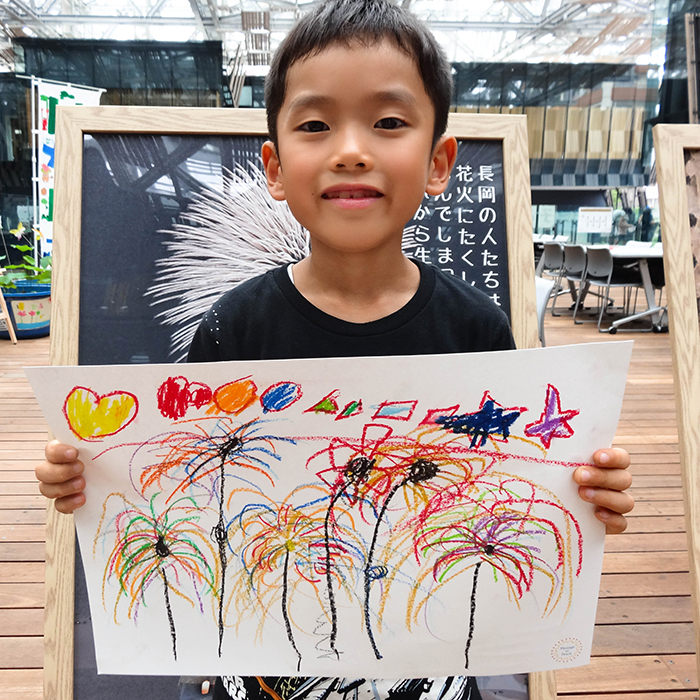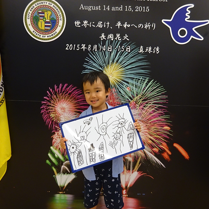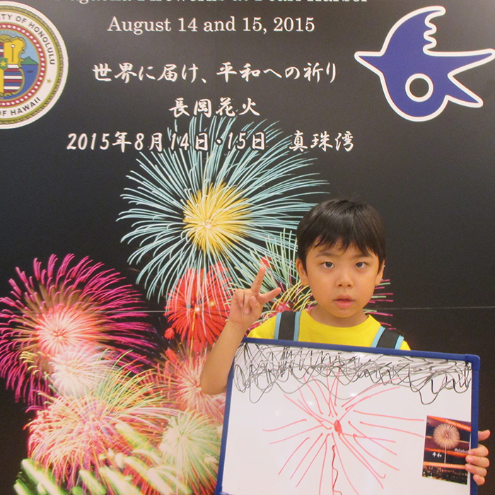 2015年、姉妹都市であるホノルル市と長岡市は「長岡ホノルル平和交流記念事業」を行います。この取り組みをきっかけに、平和へのメッセージを発信しようと、長岡の子どもたちが「絵」と「体」で長岡花火を表現しました。