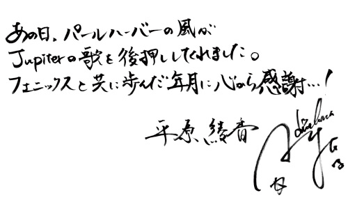 また、長岡市とホノルル市が実施する今回の平和交流記念事業をお手伝いさせていただけることを非常にうれしく思っていますし、両市の交流がさらに深まるよう今後も音楽を通じて応援させていただきます。