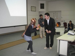 講座修了後 オレンジリングをつけて「ハイ・チーズ!」 若い力に期待します > <
