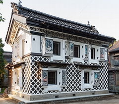 また、鏝絵(こてえ)で飾られた蔵には、十二支をはじめとする17種の動物・霊獣・九種の動物が極彩色に描かれ、全国の左官屋からは「鏝絵日本一」と讃えられています。