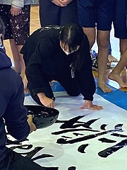 世界を股にかけて活躍する書家、栁澤魁秀(かいしゅう)さんを講師に、巨大書に挑戦します。巨大書作成に向けた講義や作品制作の過程において、生の芸術に触れるとともに、子どもたちが自分自身を振り返りながら、これからの生き方を深く考えていきます。