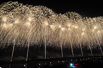 担当する花火師さんが昨年までと変わり、一味違う仕上がりに。その豪華できらびやかなさまに観客は拍手喝采!!