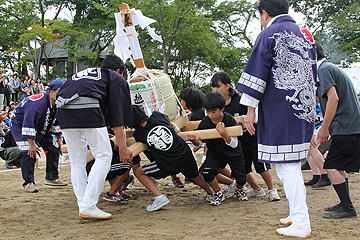 全国でも珍しい名物と言えば、樽みこしによる綱引き。樽みこし2基を綱で結んで引き合うという力比べ。見ている方も思わず力が入ります。