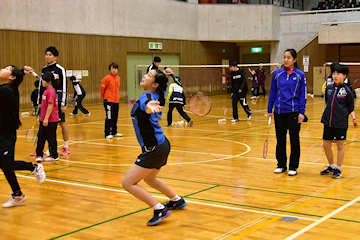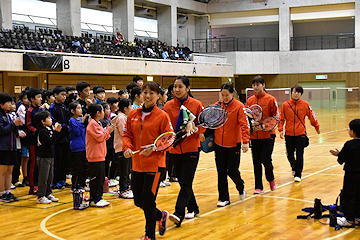 日本トップレベルの選手を擁するヨネックスバドミントンチームが2日・3日、市民体育館で小・中・高校生を対象としたクリニックを開催。実技講習や模範試合を交え、2日間で約160人に指導しました。