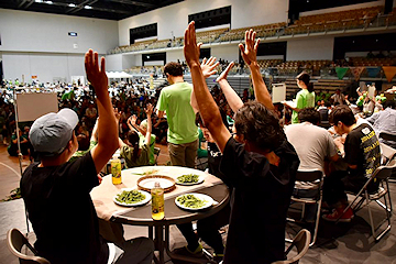 同時開催した「世界えだまめ早食い選手権」では、兵庫や千葉など全国から参戦した330人が世界王者の座を競いました。