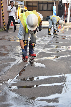 昭和36年に全国で初めて消雪パイプが設置された坂之上町1丁目の市道から作業を開始。市内にある消雪パイプは、国・県・市に私有を加えると、総延長約960km(直線距離でおよそ東京~鹿児島間に相当!)にもなります。