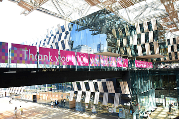 10年間のイベントや日常風景を紹介する装飾パネルを3階回遊テラスに設置しました。