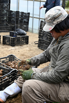 また、学校の収穫体験に協力していた久保農園さんの出荷作業では、一つひとつ丁寧に選別されていました。