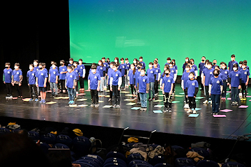 打ち上げ前には、リリックホールで希望が丘小学校6年生が「ジュピター」の合唱や平和学習の記録ビデオを披露。平和や命の尊さ、二度と戦争を起こしてはならないという想いが、子どもたちの真剣な表情から強く伝わりました。