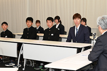 長岡市出身の荒木宥図(あらきゆうと)選手ら飛び込み競技の関係者が24日、市長を訪問しました。