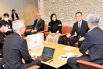 技大と東京電力HDの関係者は、磯田市長を訪れ「家庭のブレーカーに触ったことがある子どもは少ない。子どもが学校で学ぶことで家庭での防災意識も高まる」と教材の有効性を説明。
