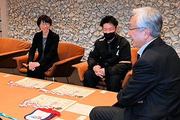 毛利さんは、「目標の大会で準優勝できた。今後はシニア以外の社会人大会にも積極的に参加したい」と話すと、磯田市長は「長く活躍できるよう怪我に気を付けてください。応援しています」と今後への期待を伝えました。