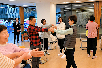 事業のタイアップイベントとして、ウオーキング教室をアオーレ長岡で開催しました。講師は、独自のウオーキング法で著名なデューク更家さん。