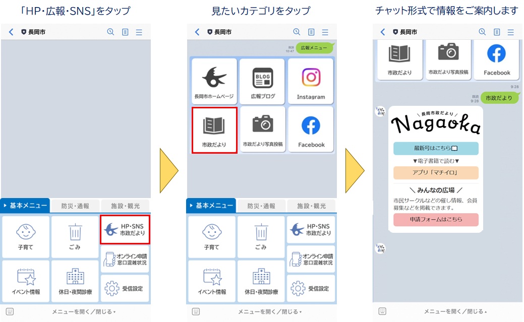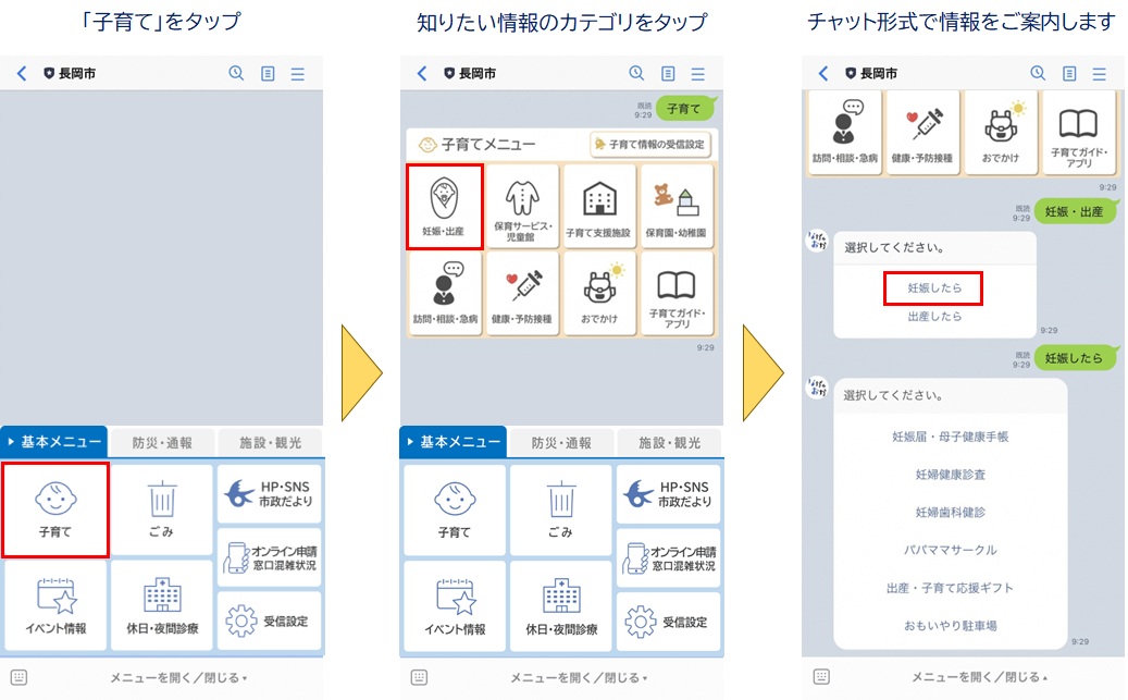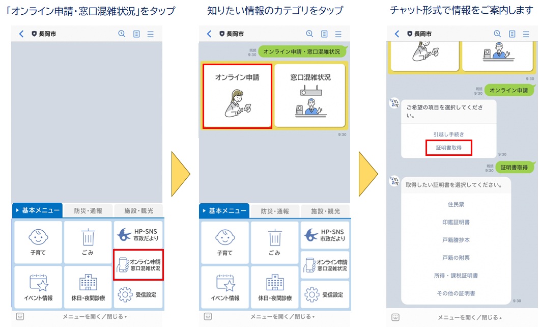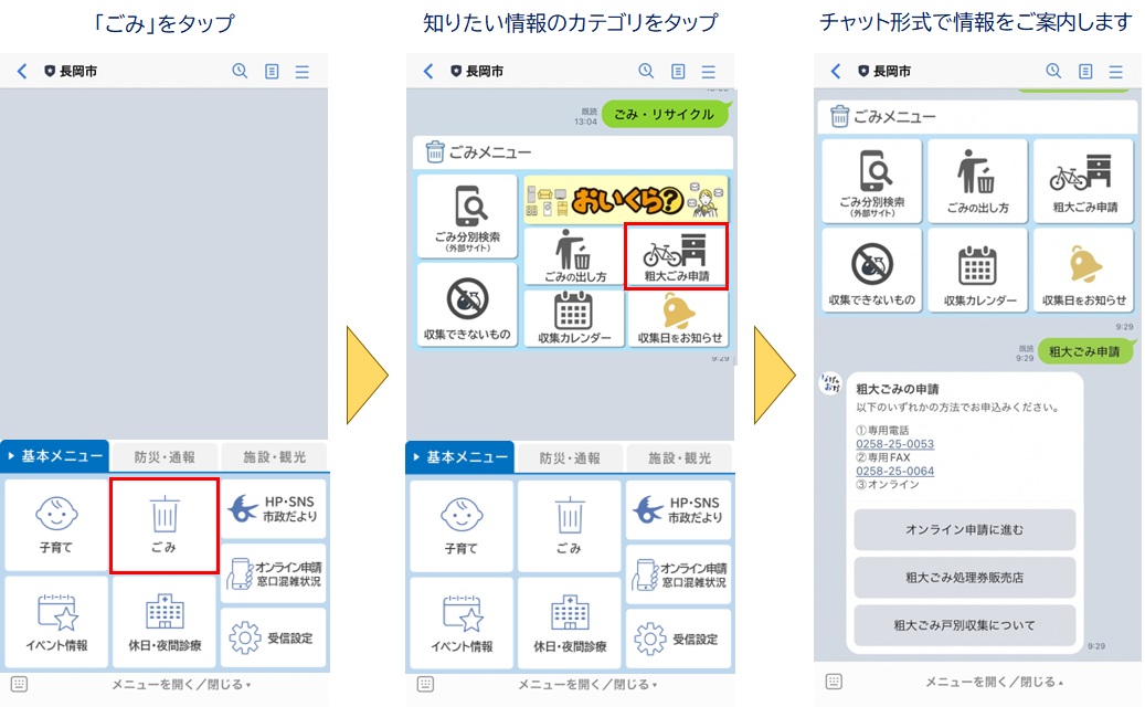 ごみの分別方法や子育て情報、窓口の混雑状況などをチャット形式で簡単に確認することができます。