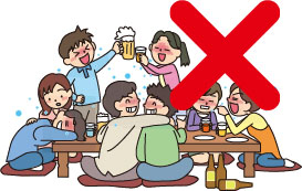 同僚と飲み会をして、参加者や家族に感染が広がりました。できるだけ人数を絞り、食事中以外はマスクを着けましょう。