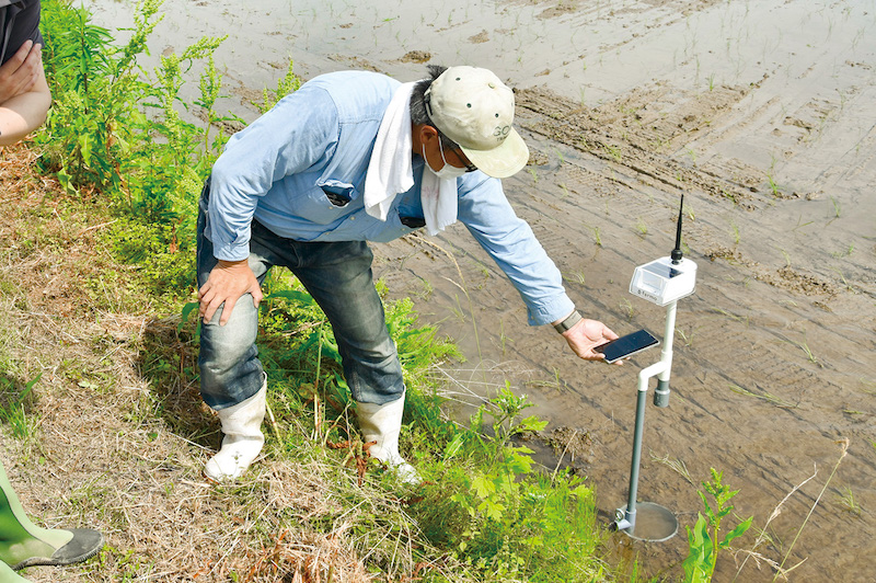 ▲水田センサーによる水位の記録をスマートフォンで確認