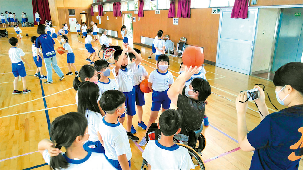 車いすバスケットボール体験会(6月29日、日越小学校)