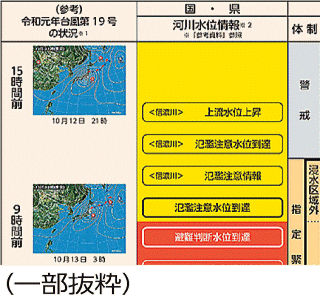 洪水からの「逃げ遅れゼロ」を目指し、行動を時系列にまとめたタイムライン。今年、自主防災会などに向けたものを作成しました。普段から行動を整理し役割を明確にしておくことができます。ぜひ地域で活用してください。タイムライン作成の講師派遣もあります。