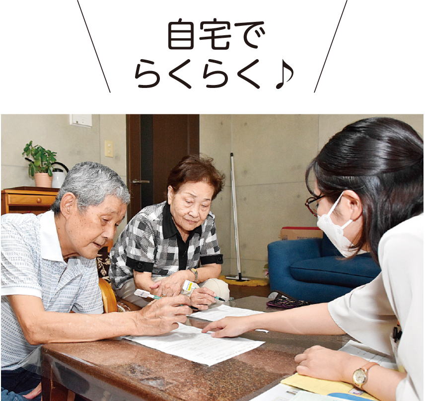 市職員が自宅を訪問。書類記入の手助けや写真撮影を無料で行い、申請を受け付けます(写真)。