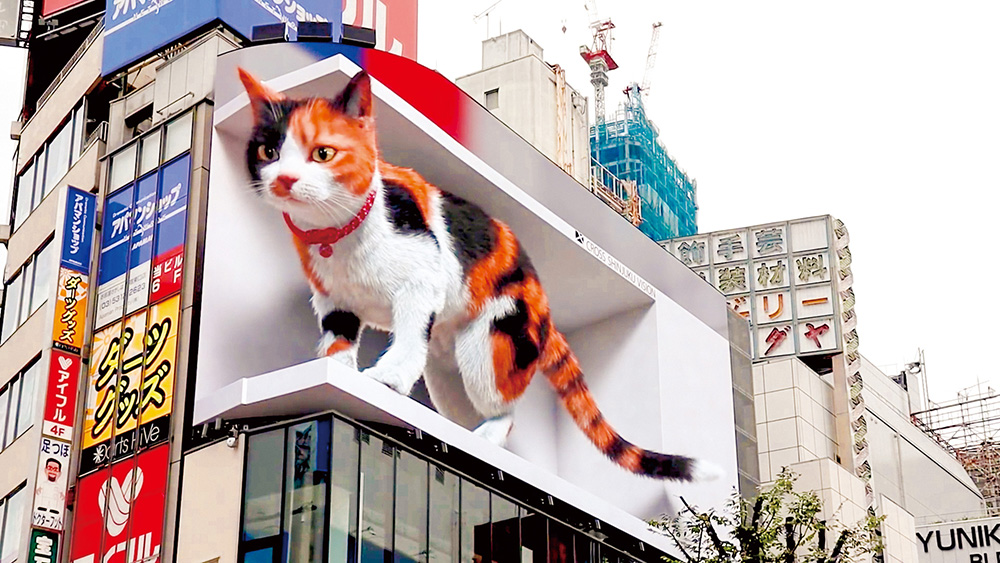 新宿駅前の街頭ビジョンで放映する3Dの巨大猫(写真)を手掛けた長岡造形大学教授・山本信一さんが県内で初めて講演します。