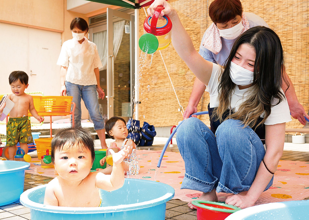 子育ての駅とちお「すくすく」でプール開きをしました。初めての水遊びにドキドキの赤ちゃんたちも、慣れてくるとお水の気持ち良さにリラックス♪