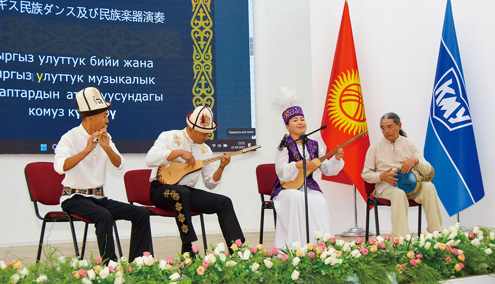 アラバエフ・キルギス国立大学付属日本学院の学生と交流する訪問団