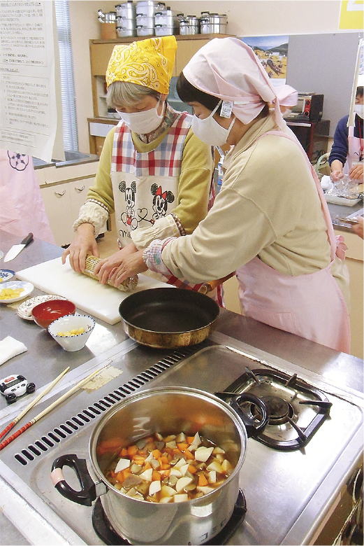 よいたコミュニティセンターで行われた、ふるさと料理講習会。食生活改善推進委員がだて巻きやのっぺの作り方を伝授しました。料理のレパートリーが増えて、新年の食卓が楽しみに。