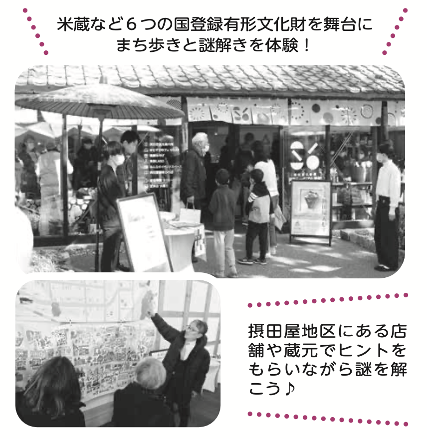 摂田屋・宮内地区の観光拠点である旧機那サフラン酒製造本舗・米蔵(こめぐら)を中心に、まちを巡って謎解きをします。