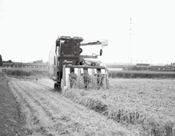 小学校のグラウンド約40個分の面積(48ha)の田んぼで、給食用のコシヒカリなどを作っています。近くの豊田小学校では父の代から数えて27年間、授業で稲作も教えています。