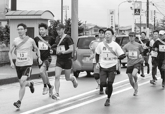 中之島一周駅伝競走大会に14チームが出場しました。雨にも負けず、完走を目指して気合十分な選手たち。沿道からの温かい声援を受け、全チームが8区間27.1キロのたすきをつなぎました。