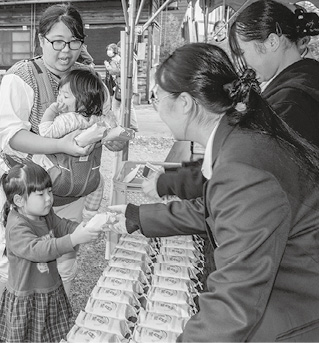 栃尾地域で行った「杜々の森 縁(塩)むすび祭」では、炊きたての新米が振る舞われました。栃尾高校生がデザインした袋に入った新米のプレゼントも大人気。並んだかいがあったね!