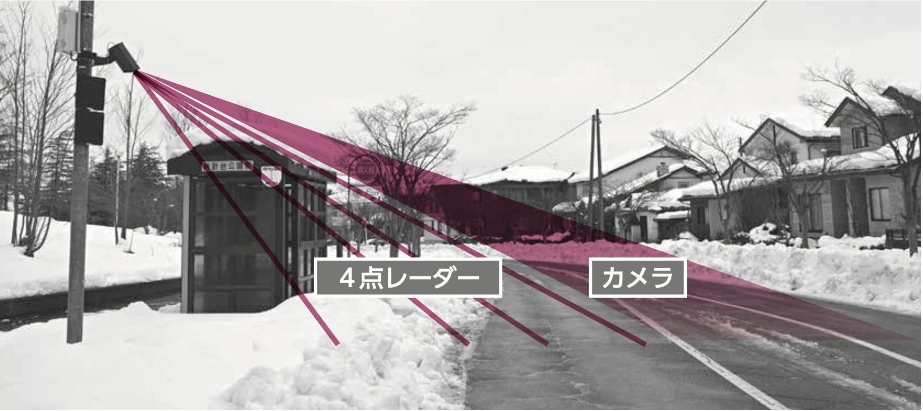 センサーは(株)スノーテック新潟が開発。4点レーダーで測定したデータとカメラ映像は市と除雪事業者で共有します。車道の路肩も観測できる独自の設計で、排雪作業の判断もスムーズに。今後の本格導入を目指して、検証を進めていきます。