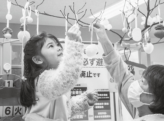 子育ての駅とちお「すくすく」で、子どもたちが小正月の伝統行事「まゆ玉飾り」を体験。ミズキの枝に色とりどりの縁起物を飾り付けしました。「今年も元気に過ごせますように!」
