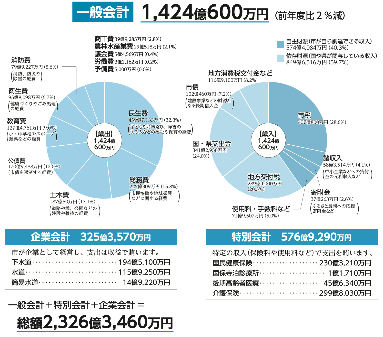 令和8年度の当初予算は、新たな総合計画(前ページ)で掲げた目標に沿って編成しました。「米百俵」の精神と「市民協働」の力を結集し、歩みを止めることなく、次の10年、さらにその先の未来も見据えたまちづくりを進めていきます。