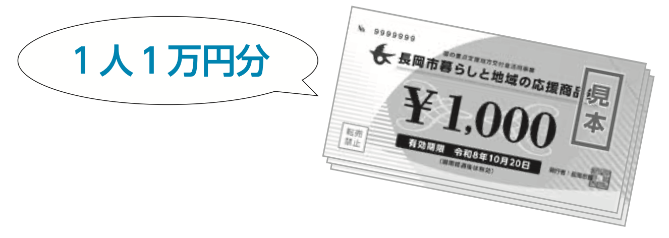 商品券は千円券10枚の1万円分。1人1通ずつ4月中に宅配便で順次配送します。受け取りは対面のみです。