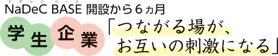 | 市内3大学1高専と企業の交流の場「NaDeC BASE(ナデックべース)」が旧大和長岡店ビル1階にオープンして約半年。月平均1、200人、計約1万5千人が利用しています。 3大学1高専合同の起業セミナーやIoT(アイオーティー)※の授業などが行われ、学生同士の交流もさらに盛んに。大学間の合同チームでビジネスコンテストに参加し準グランプリを受賞するなど、新しい活動も始まっています。 学生の発想に企業も注目学生と市内企業が一緒に課題解決に取り組む実習も行っています。参加企業からは「社内だけでは思い付かない発想が得られた」と、企業活動へのヒントを探る場として期待の声も聞かれました。今後、学生と企業が日常的に集まり、人と人とのつながりから新しいアイデアが生まれる機会を増やしていきます。 ※IoT…身の回りのモノがインターネットにつながる仕組み |