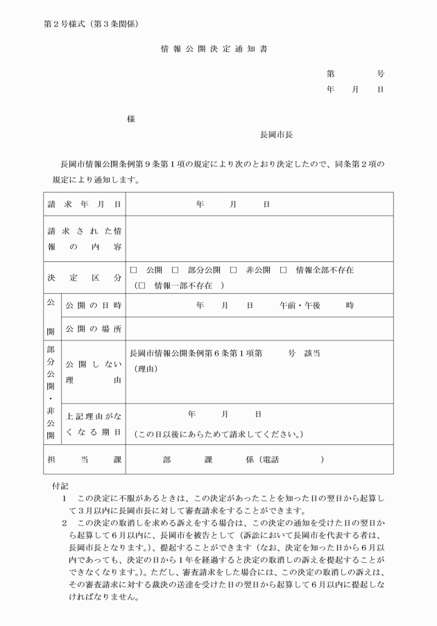 第1条 この規則は、長岡市情報公開条例(平成7年長岡市条例第33号。以下「条例」という。)第18条の規定に基づき、条例の施行に関し必要な事項を定めることを目的とする。