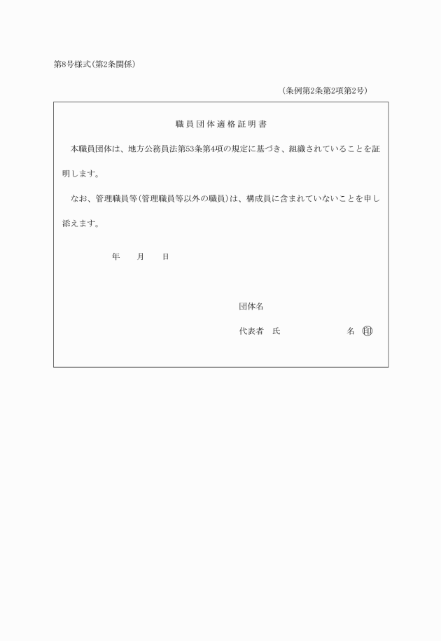 第4条 職員団体等に対する法人格の付与に関する法律(昭和53年法律第80号)第3条第1項の規定による法人となる旨の申出は、別記第11号様式によるものとする。
