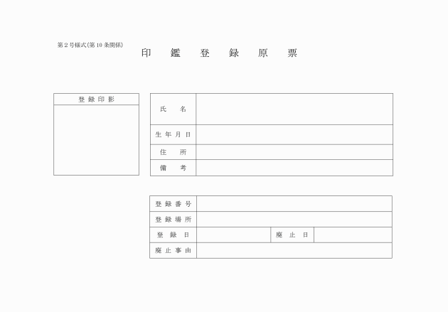 2 改正後の別記第2号様式の規定は、施行日以後の登録に係る印鑑登録原票について適用し、施行日前の登録に係る印鑑登録原票については、なお従前の例による。