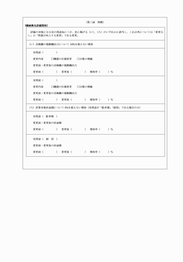 第5条 法第7条第1項の規定による申請には省令第4条第1項に規定する図書を添付するものとする。この場合において、建築物のエネルギー消費性能の向上等に関する法律(平成27年法律第53号)第11条第1項の建築物エネルギー消費性能適合性判定を要する建築物で、建築物のエネルギー消費性能の向上等に関する法律施行規則(平成28年国土交通省令第5号)第5条に規定する軽微な変更(建築物エネルギー消費性能基準への適合を再計算により確認したものに限る。)を行ったときは、同令第13条に規定する軽微な変更に該当していることを証する書面又はその写し並びに当該書面の交付に要した図書及び書類を併せて添付しなければならない。