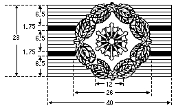 消防長章 | 銀色の台地とし、金色線3条及び黒色線2条を配し、中央に、いぶし銀色の桜葉及び銀磨きの桜花で囲んだはめ込みの金色消防章を配する。 消防長章は、階級章の上部に付ける。 形状及び寸法は、図のとおりとする。 | |||||