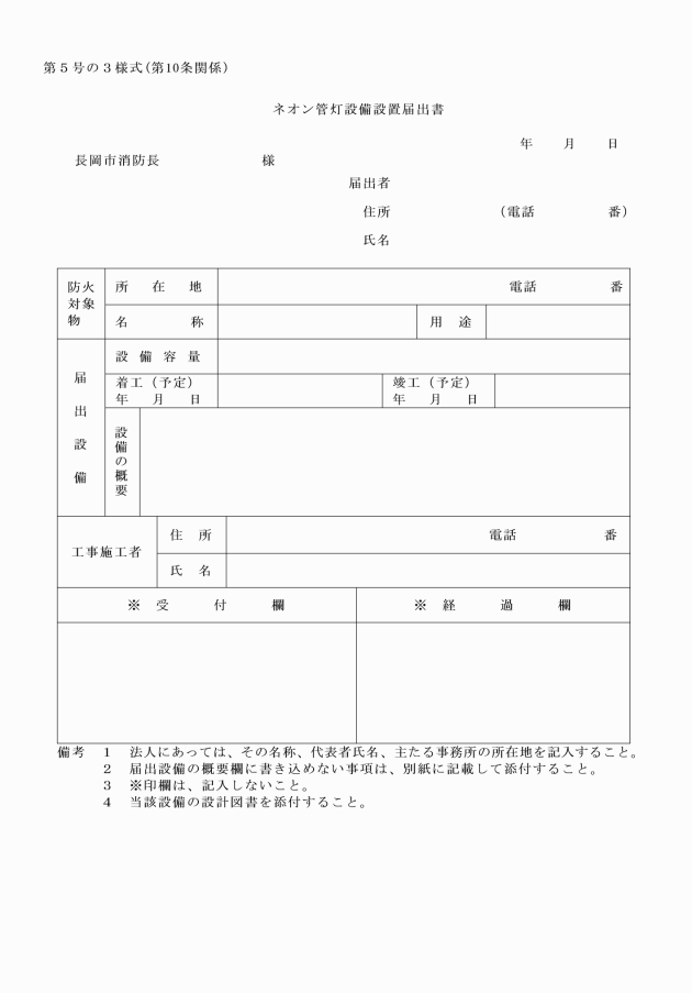 (火災と紛らわしい煙等を発するおそれのある行為等の届出の様式等)