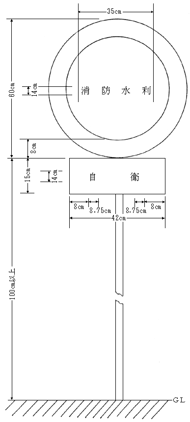 2 標示板を図示の取付け方によって取り付けることが著しく困難又は不適当であるときは、他の方法によることができる。