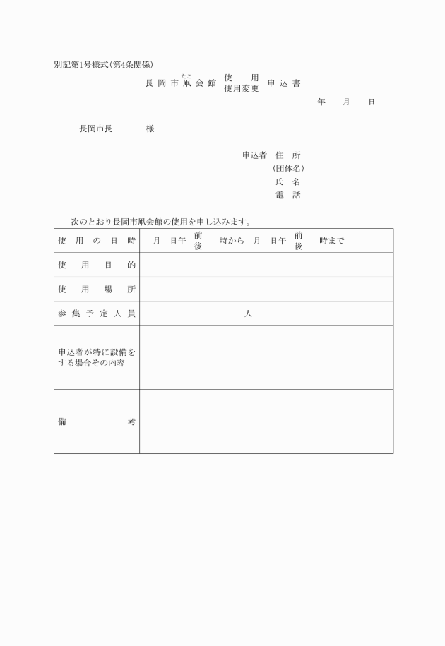 2 会館の使用の申込みは、使用しようとする日の1月前の日(以下「申込開始日」という。)からすることができる。ただし、市長が特に必要と認めた場合は、申込開始日前であっても、申し込むことができる。