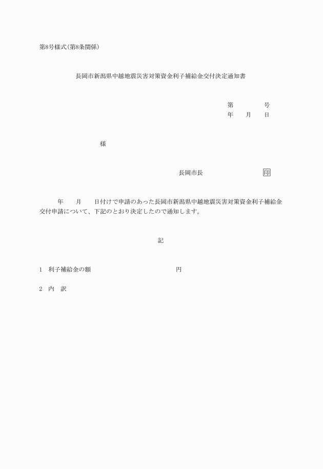 ○長岡市新潟県中越地震災害対策資金利子補給金交付要綱