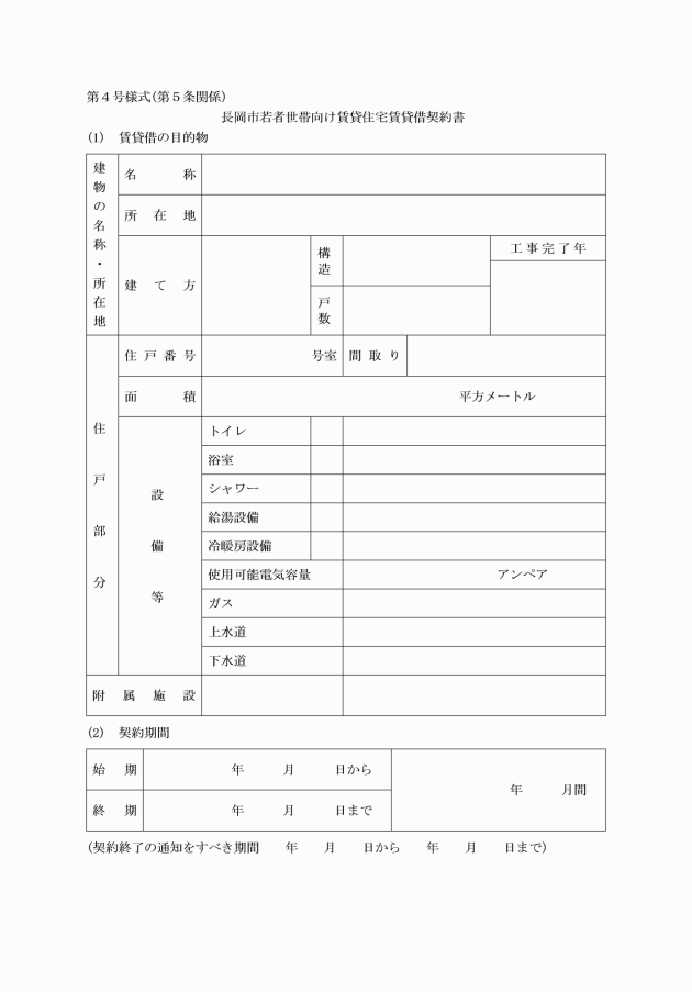 ○長岡市若者世帯向け賃貸住宅条例施行規則