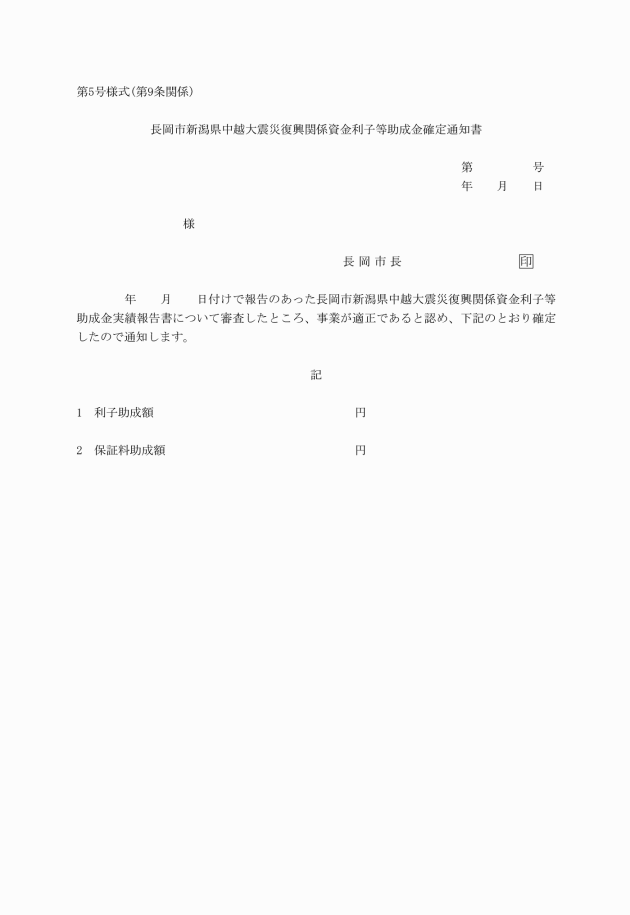 ○長岡市新潟県中越大震災復興関係資金利子等助成金交付要綱