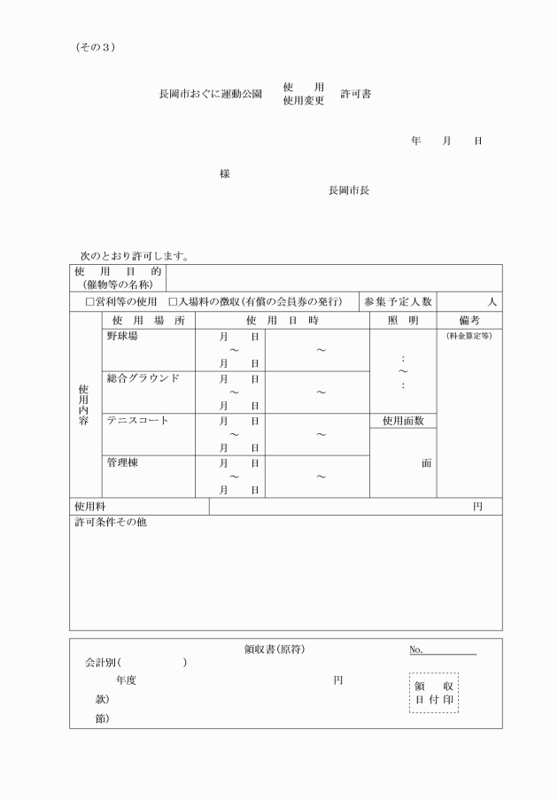 ○長岡市運動公園条例施行規則