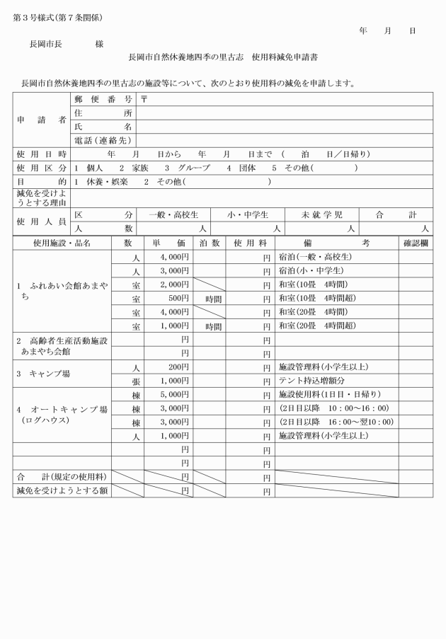 第3条 ふれあい会館あまやち、高齢者生産活動施設あまやち会館、ふれあい広場、釣場及び山菜等採取園の休館日等は、次のとおりとする。ただし、市長が必要と認めたときは、臨時に開館若しくは開園をし、又は休館若しくは休園をすることができる。